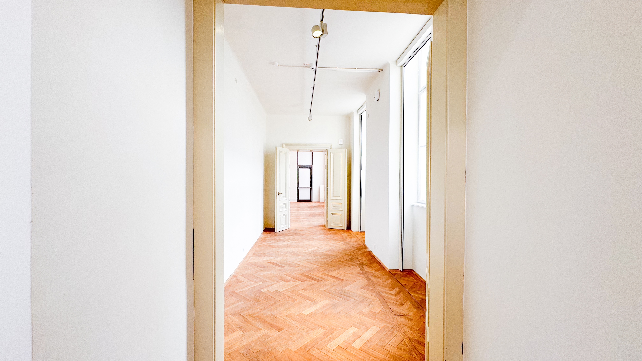 The Exhibit Gallery in the Academy building on Schillerplatz is located on the 1st floor and has 219 m² of exhibition space (see appendix for room plan and photos). Compliance with the fire protection regulations, the requirements of the exhibit insurance and the structural conditions of the historical rooms, e.g. it is not possible to suspend heavy objects from the ceiling, must be observed.