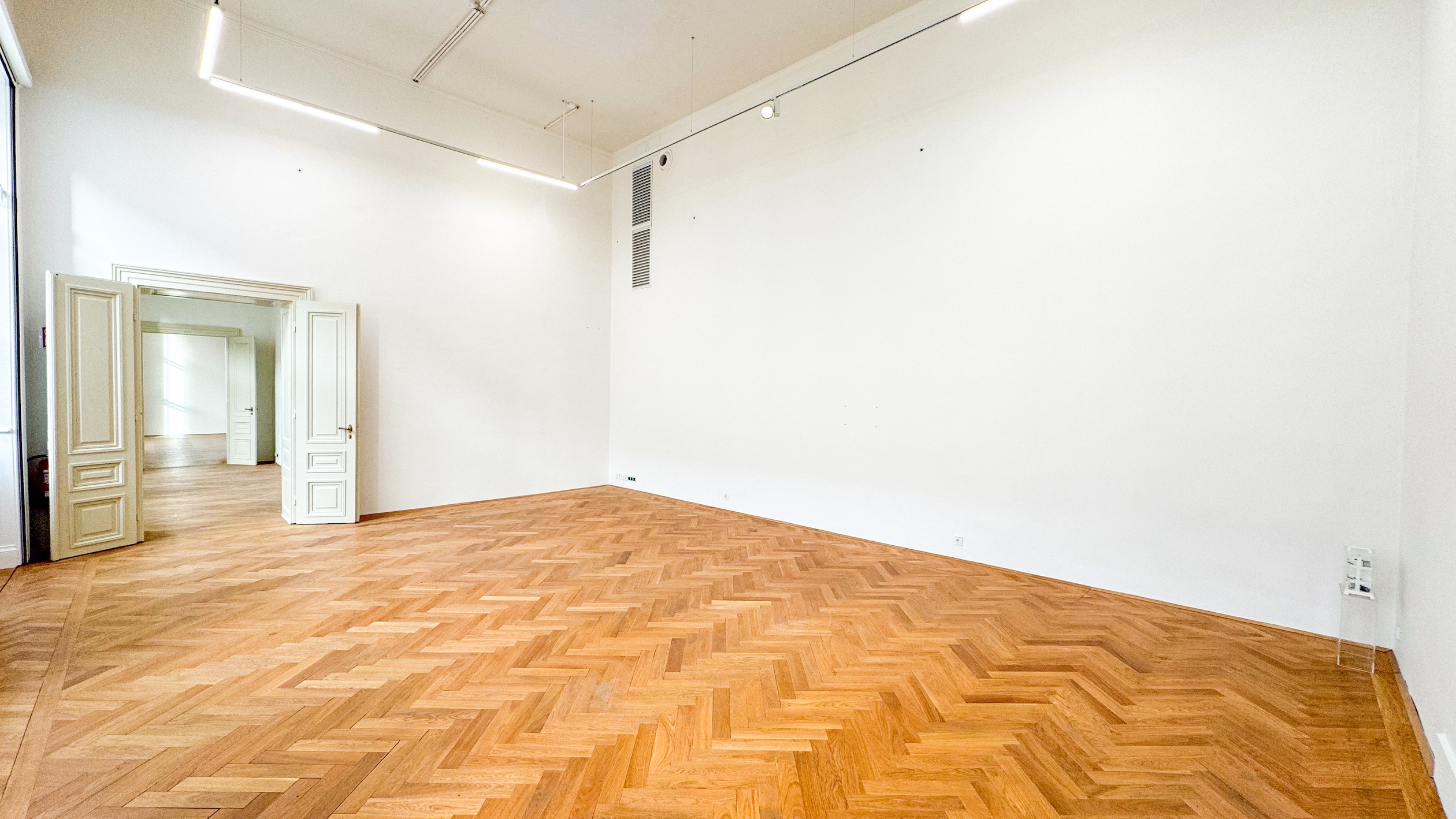 The Exhibit Gallery in the Academy building on Schillerplatz is located on the 1st floor and has 219 m² of exhibition space (see appendix for room plan and photos). Compliance with the fire protection regulations, the requirements of the exhibit insurance and the structural conditions of the historical rooms, e.g. it is not possible to suspend heavy objects from the ceiling, must be observed.